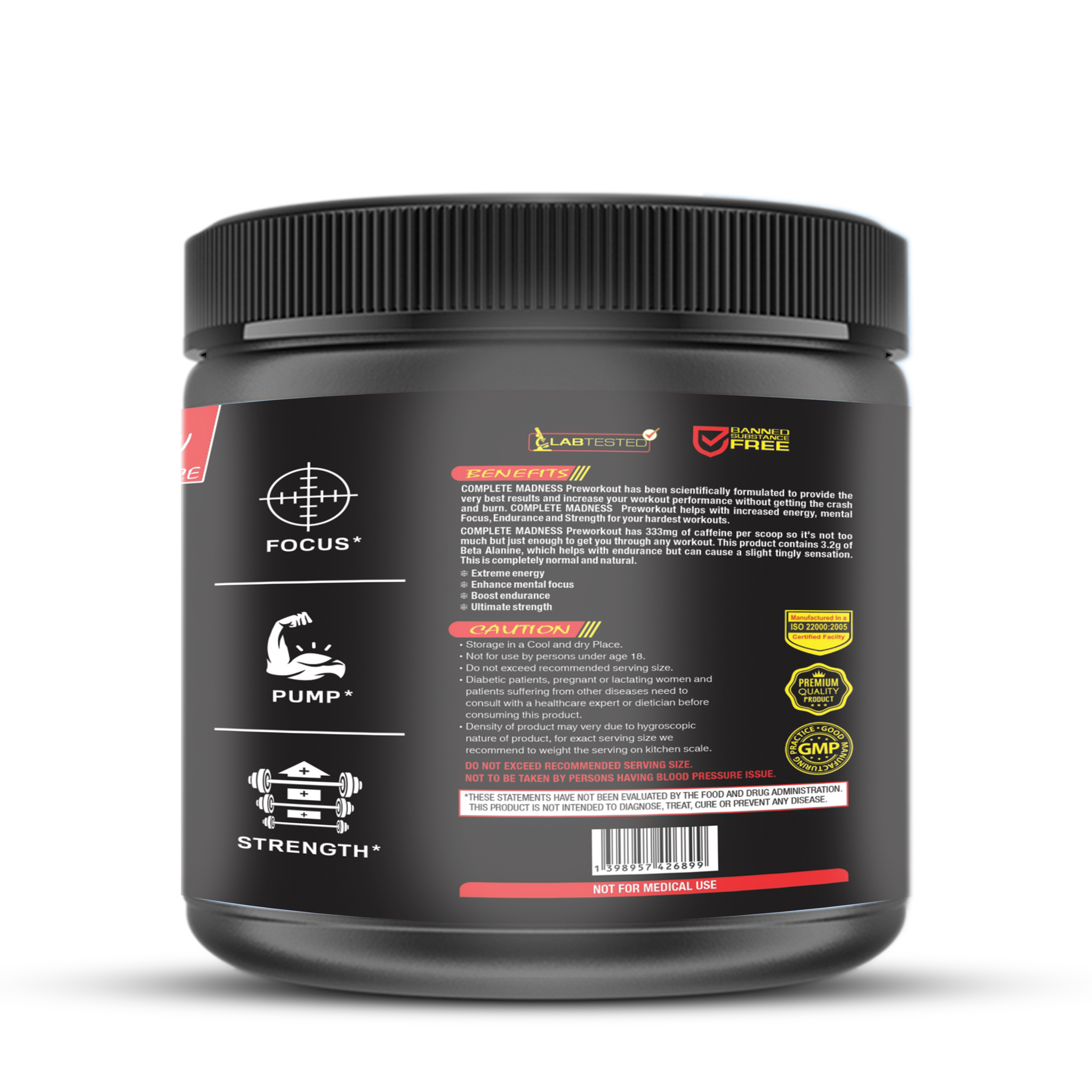 Unleash maximum performance, focus, and energy with HSN Lab Complete Madness Pre Workout, a powerful pre-training supplement engineered for athletes and fitness enthusiasts who refuse to settle for average. Designed to help you push harder, train longer, and break through performance plateaus, this formula brings together key performance-driven ingredients in every scoop.